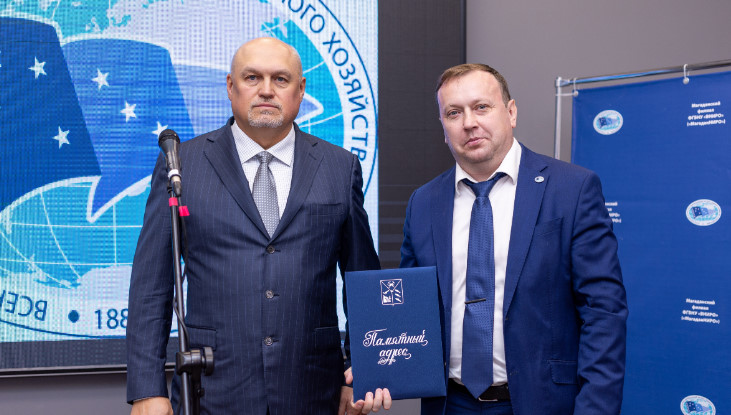 Парламентарий вручил руководителю Магаданского филиала ФГБНУ «ВНИРО» Евгению Метелёву Памятный адрес от Председателя Магаданской областной Думы.