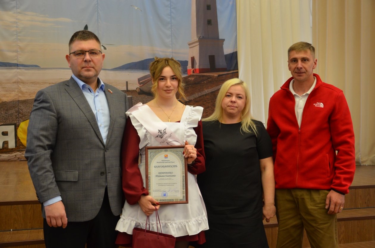 За отличную учебу и активную общественную деятельность Андрей Самсон вручил Благодарности председателя Думы Ульяне Джанабековой, Алиме Гонсоруновой, Сергею Шерудило, Анастасии Худотеплой, Татьяне Кравченко, Ульяне Карповой и Юлии Шулянской.