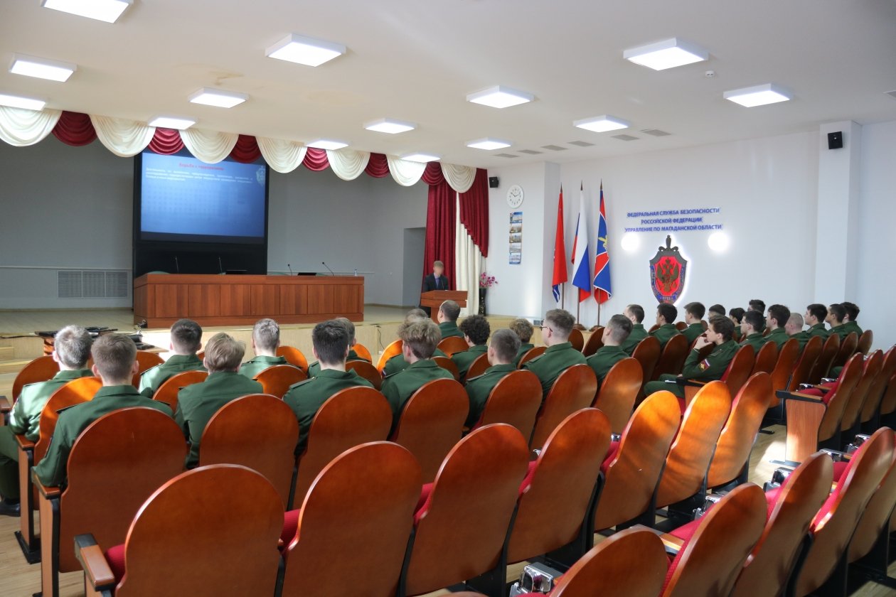 Гости собрались в актовом зале, где им рассказали о деятельности Федеральной службы безопасности Российской Федерации в целом и территориального органа безопасности в частности, об условиях и процессе зачисления на службу.