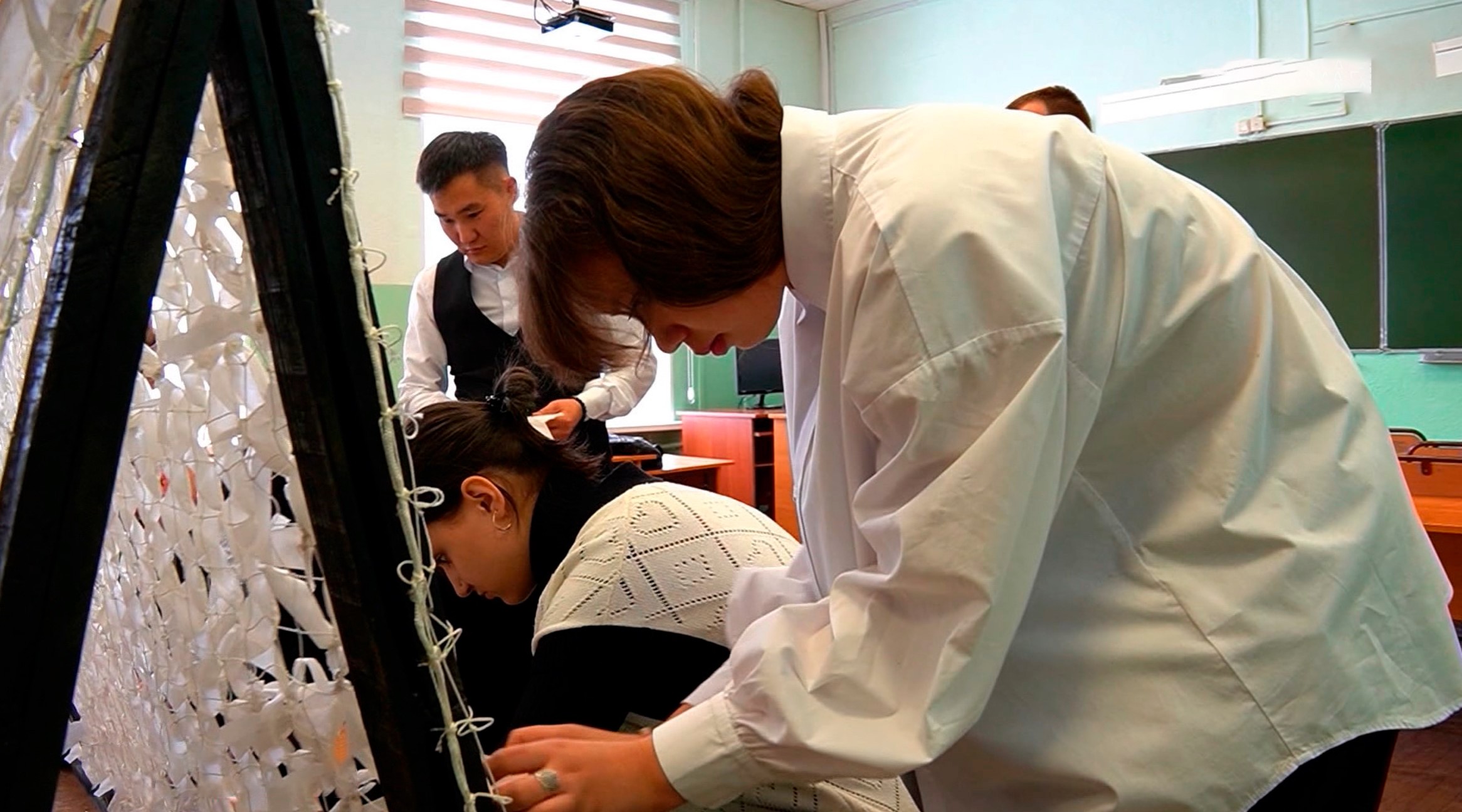 Ученики 4-ой школы Магадана плетут маскировочные сети
