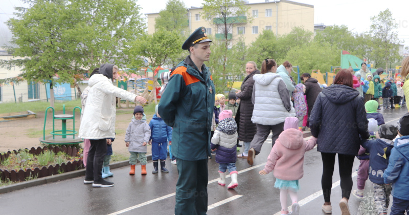 МАГАДАН. КОЛЫМА-ИНФОРМ. Инспекторы отдела надзорной деятельности и профилактической работы по городу Магадану провели учебно-тренировочную эвакуацию в Детском саду комбинированного вида № 55.
