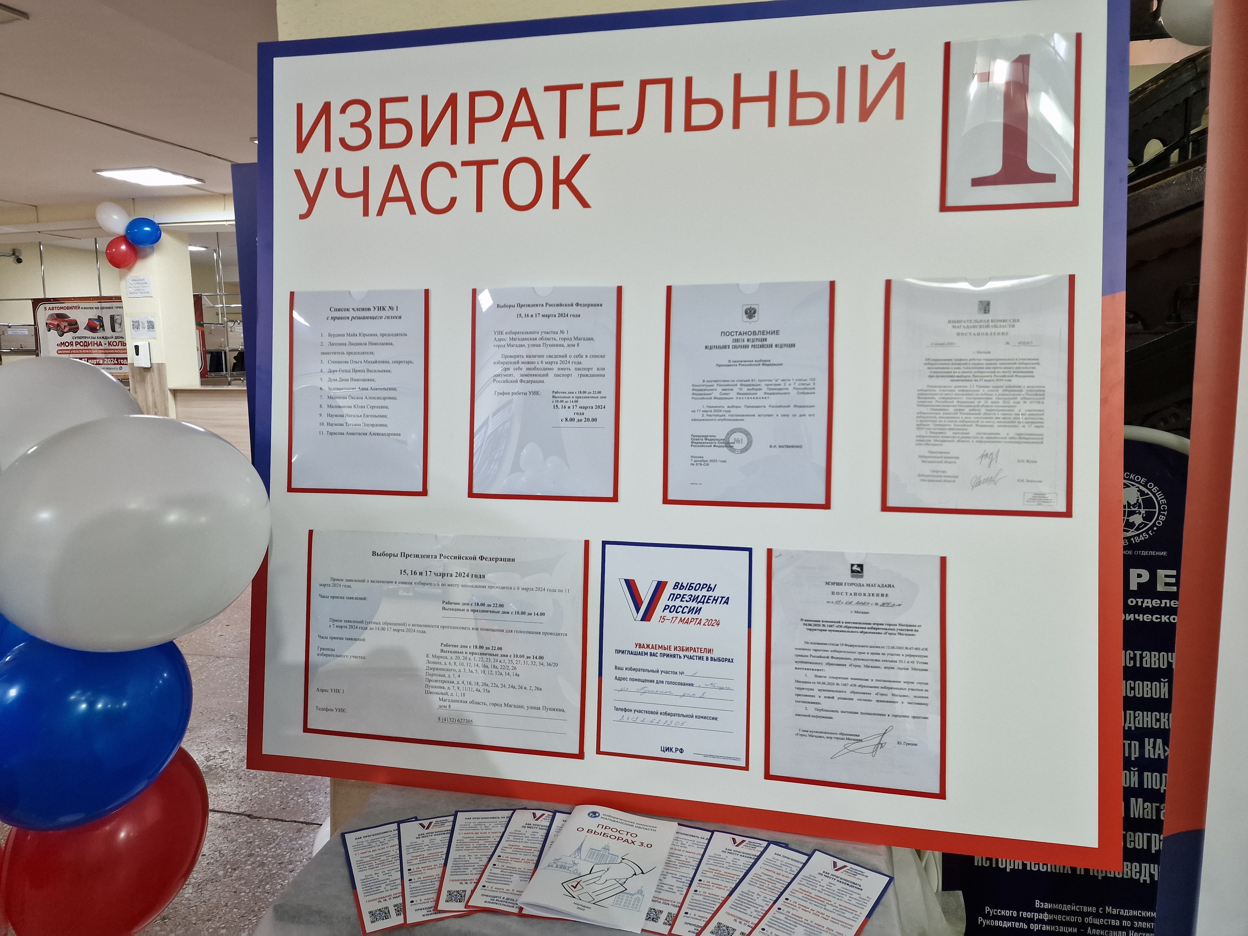 Ирина Майорова, председатель УИК №5: На нашем избирательном участке предусмотрено много различных активностей, это и мастер классы по различной тематике, и герб России, это и достопримечательности Магадана и Магаданской области, это и открытки солдатам, и конечно же гастрономический фестиваль. И все завершиться праздничным концертом.
