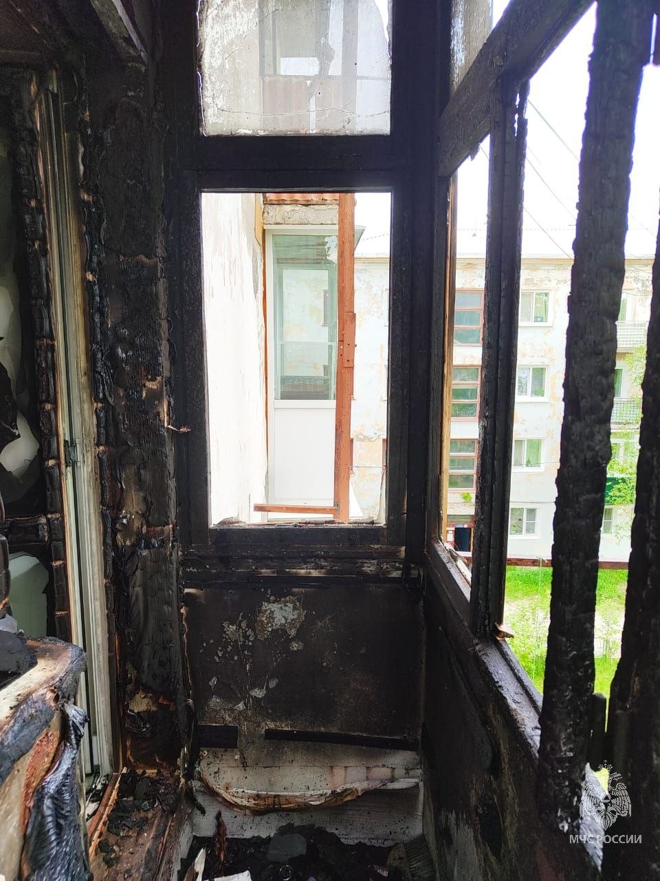 Пожарные потушили балкон в посёлке Сокол. Фото: ГУ МЧС России по Магаданской области