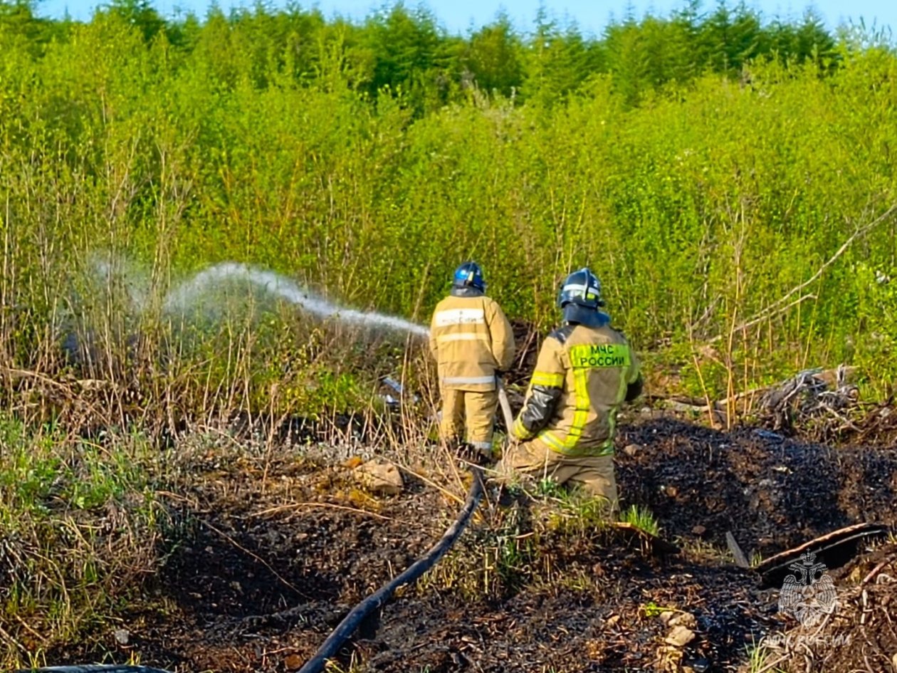 Площадь пожара составила 1 000 квадратных метров Пожарные не дали огню перейти на лесной массив на улице Дорожной в Магадане.