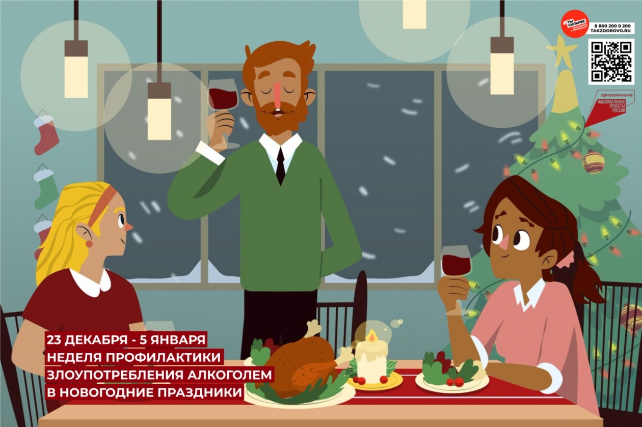 Минздрав РФ проводит неделю профилактики злоупотребления алкоголем в новогодние праздники
